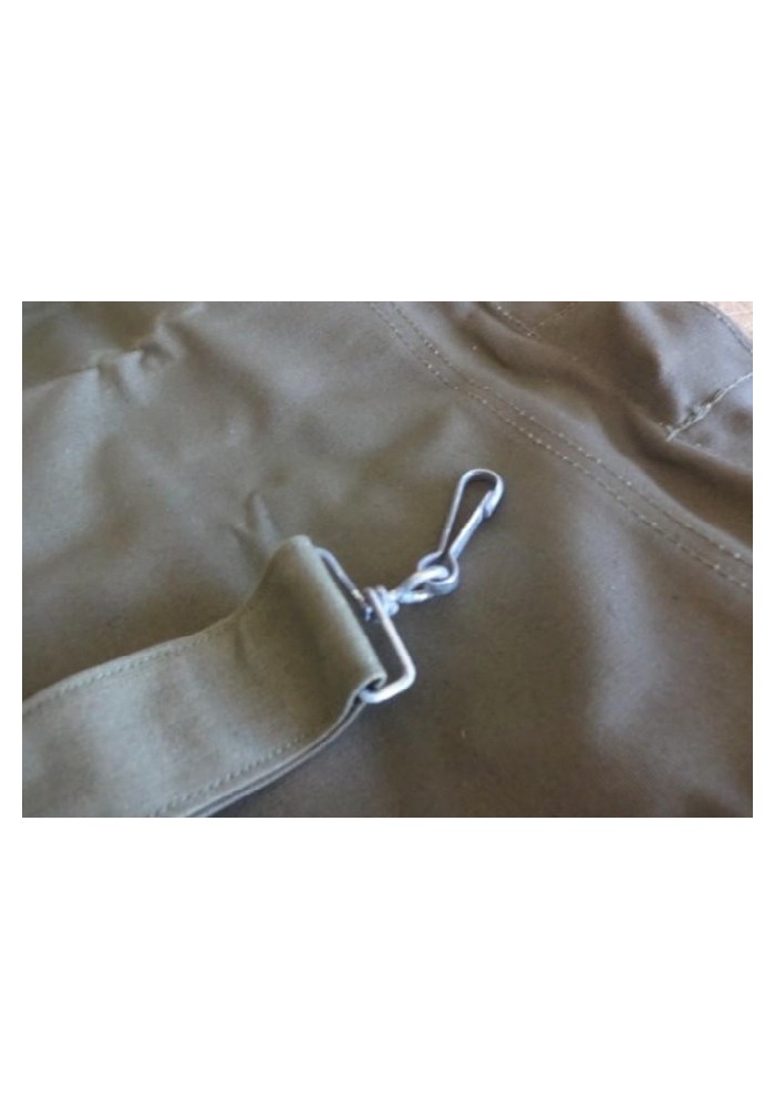 Fabricado en lona gruesa de color verde oliva o caqui, el petate tenía una forma cilíndrica y alargada, con una base redonda y una abertura en la parte superior que se cerraba mediante un cordón o cuerda de ajuste, a menudo reforzado con ojales metálicos. Su diseño era sencillo, pero efectivo: permitía transportar la ropa, el equipo personal y otros enseres necesarios para la vida militar, y podía cargarse fácilmente al hombro gracias a una asa lateral o correa incorporada.